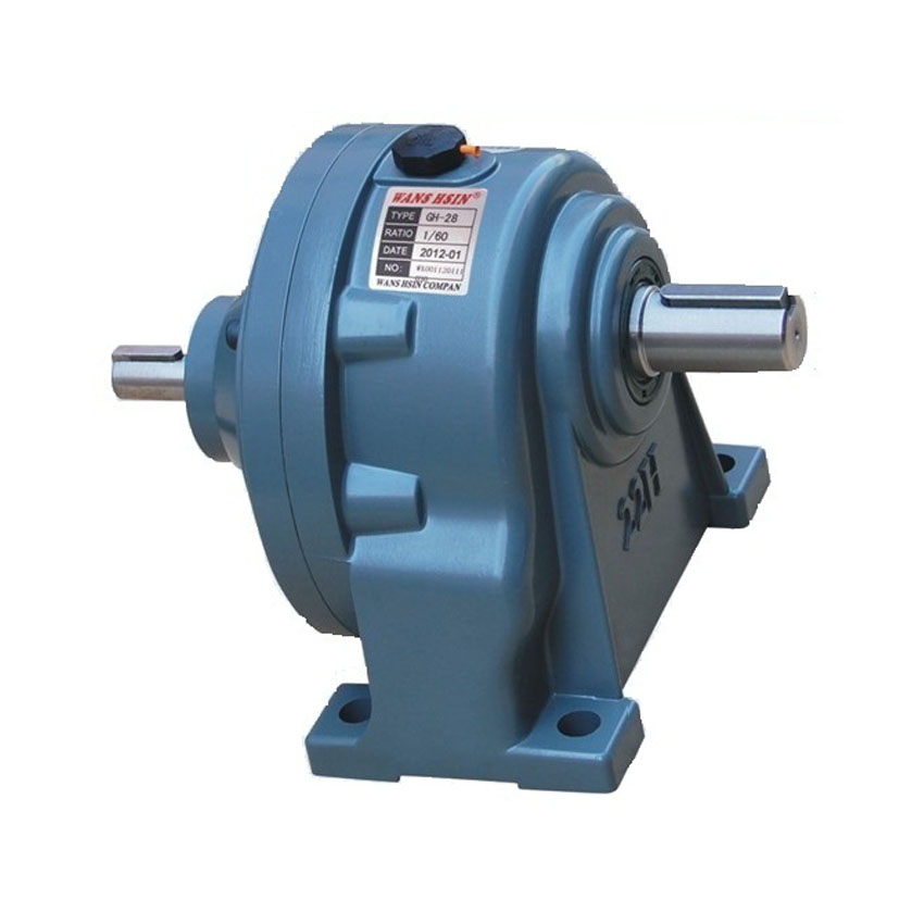 萬鑫GH-28減速機型號:GH18(輸出軸直徑)-100(電機功率)-20(減速比)S(S代表三相,A代表單相) |