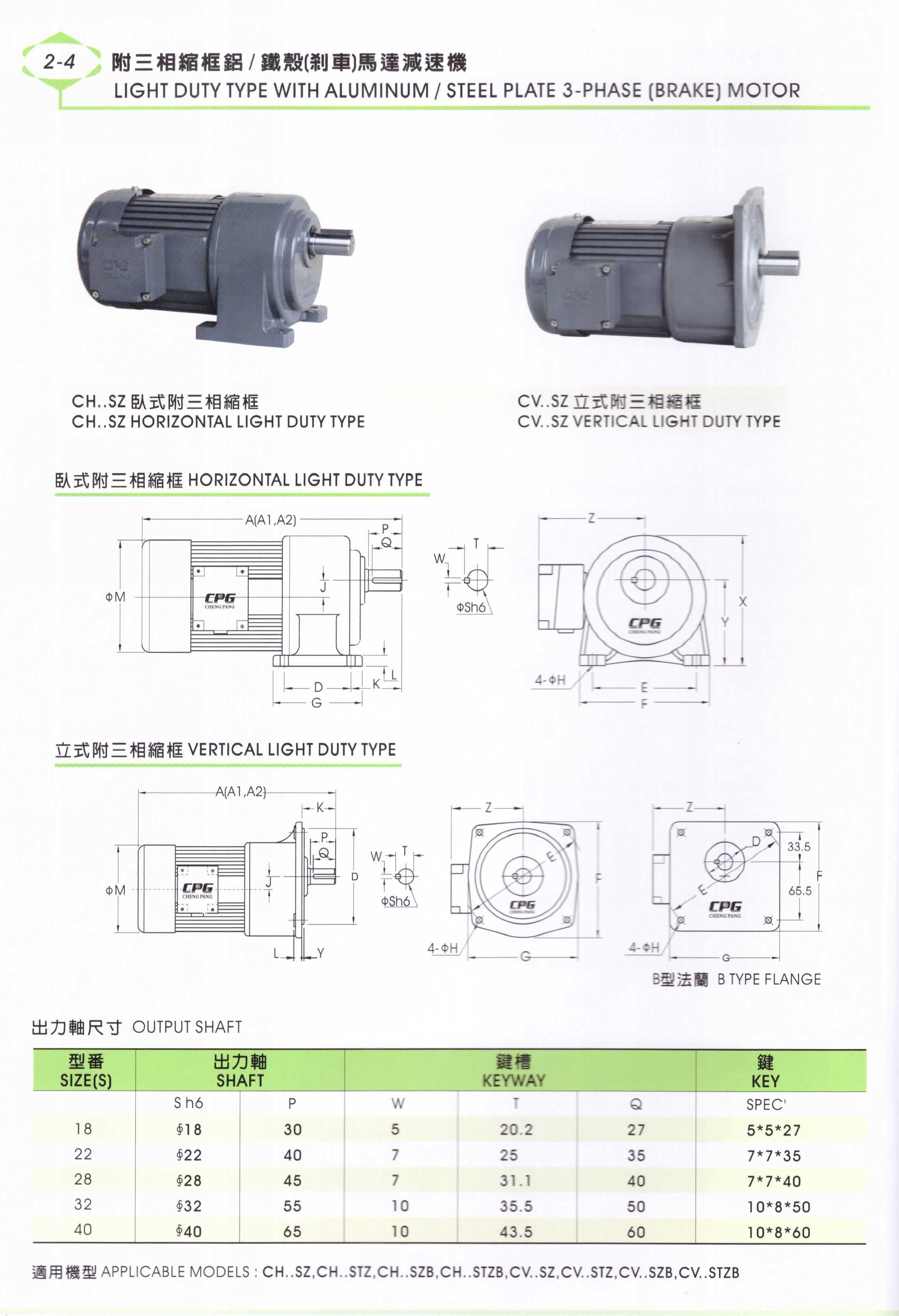 3.縮框臥式三相(單相)鋁殼/鐵殼減速馬達:CH100/200/400/750/1500/2200/3700...SZ/SZB/AZ/AZS