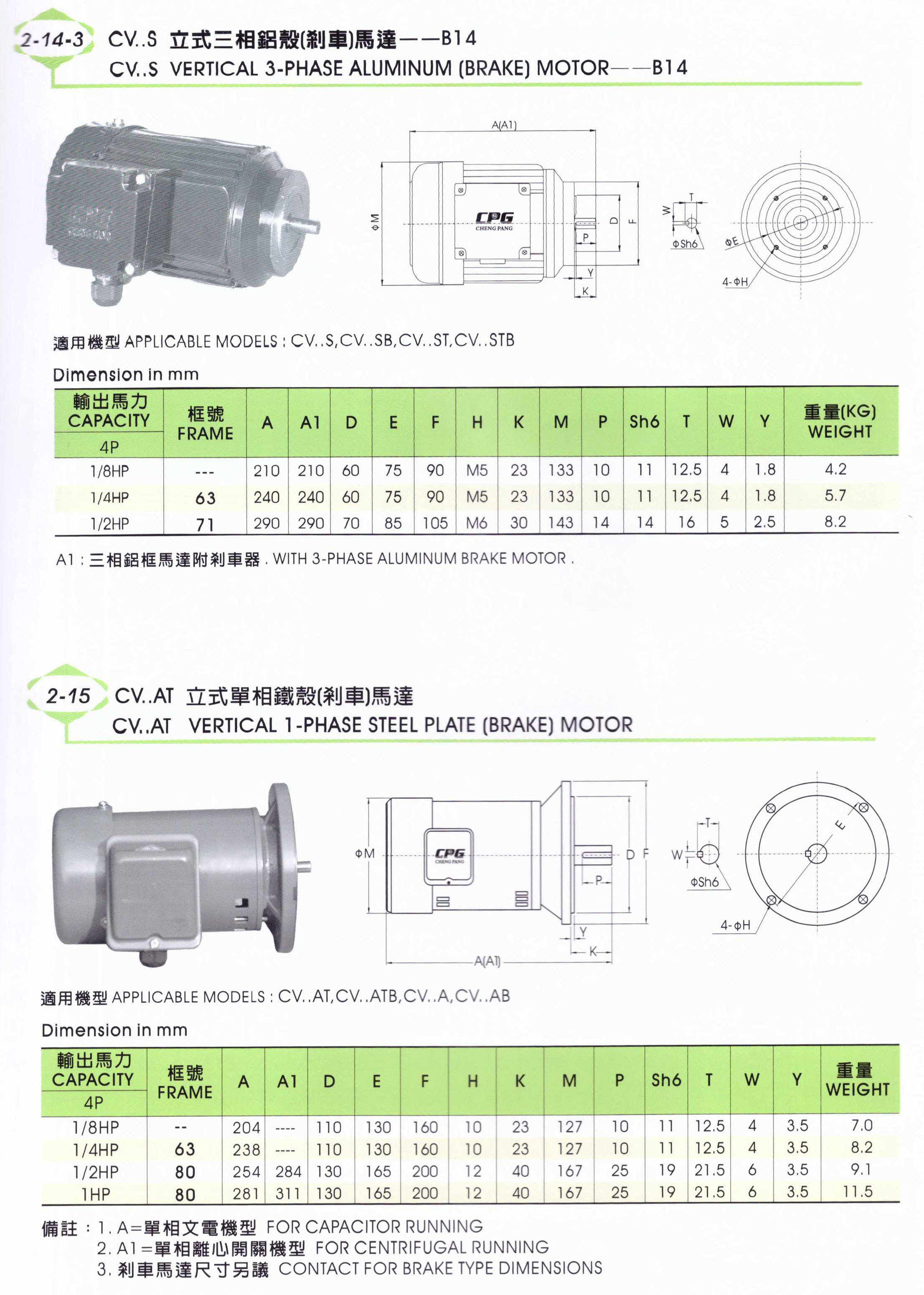 2.標(biāo)準(zhǔn)立式三相(單相)鋁殼/鐵殼減速馬達:CV100/200/400/750/1500/2200/3700...S/SB/A/AS