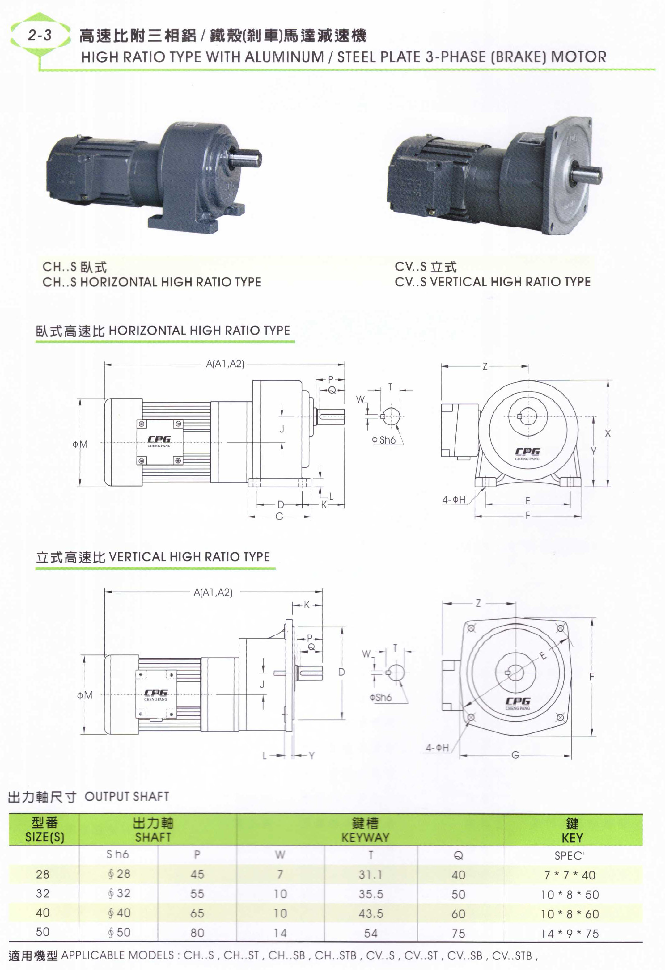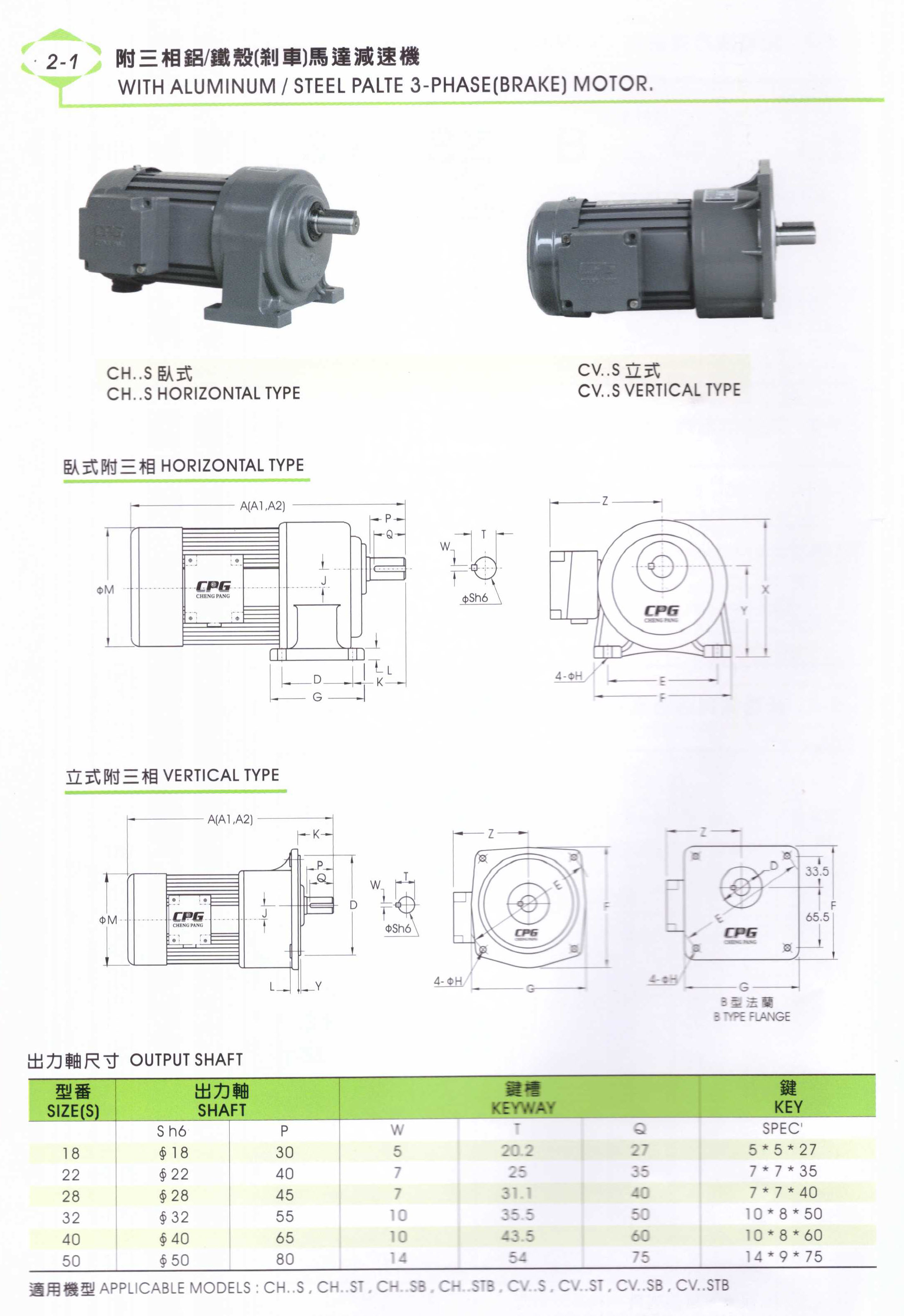 1.標(biāo)準(zhǔn)臥式三相(單相)鋁殼/鐵殼減速馬達: CH100/200/400/750/1500/2200/3700...S/SB/A/AS