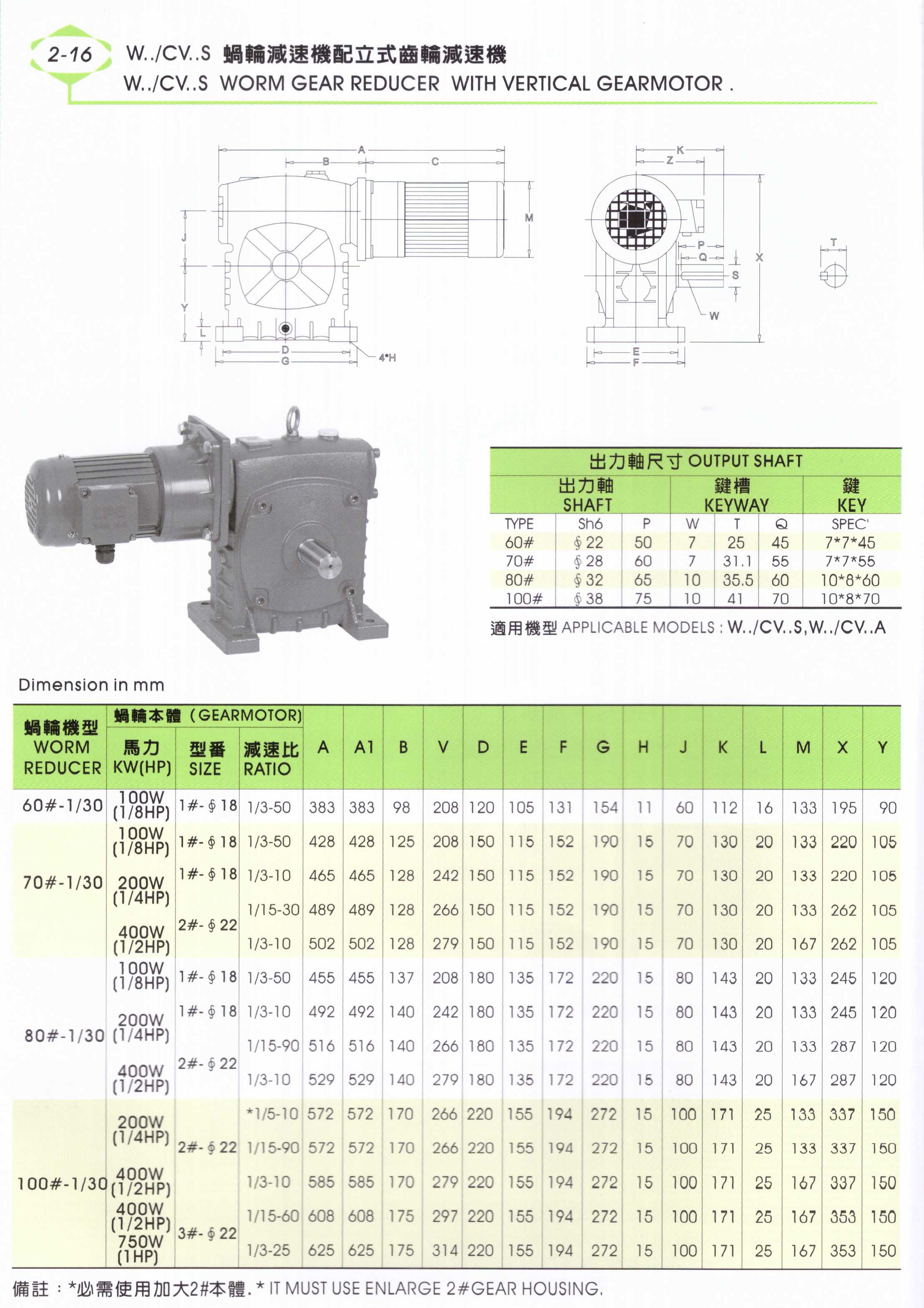 4.縮框立式三相(單相)鋁殼/鐵殼減速馬達:CV100/200/400/750/1500/2200/3700...SZ/SZB/AZ/AZS