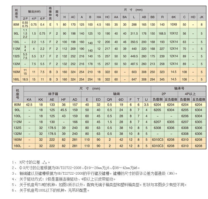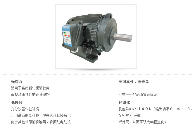 鋁殼電機 機座號80M-160L(輸出功率0.75KW-18.5KW)?? 強有力適用于高負載與頻繁使用 重視加速特性的設計思想 低噪音 充分改善作業環境 運用最新的高科技手段來實現低噪音化 優于其它公司的低噪音、低振動電動機 高可靠性、長壽命 擁有嚴格的品質管理體系 輕量化 機座號80M-160L(輸出功率0.75KW-18.5KW)采用鋁外殼,從而實現大幅輕量化。 外形尺寸 全封閉外部風扇型(GB3(IE2)) |